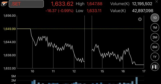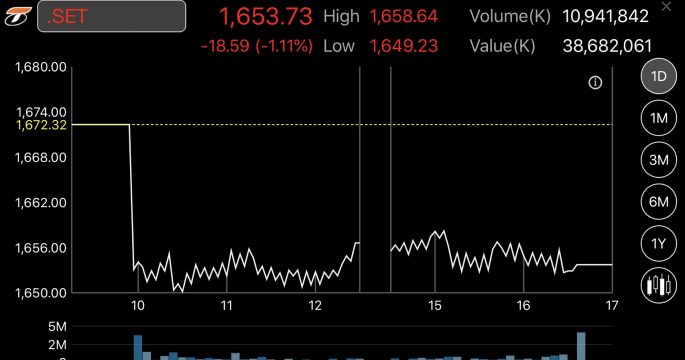 หุ้นไทยร่วง 18.59 จุด ปรับลงตามตลาดต่างประเทศ กังวลสงครามการค้าสหรัฐ-จีน และภาวะเศรษฐกิจถดถอย