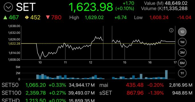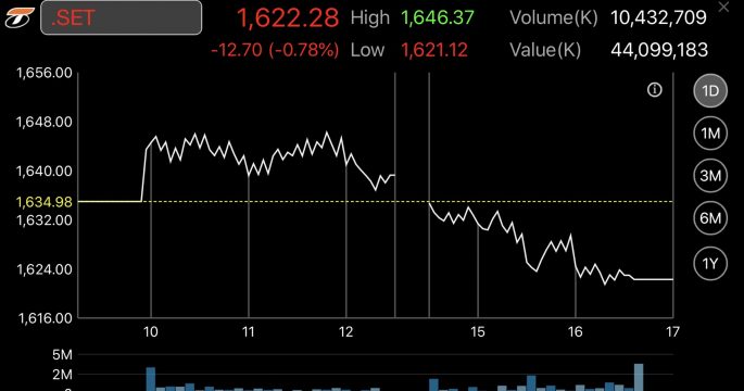 หุ้นไทยลดลงกว่า 12 จุด วิตกสงครามการค้า-เงินทุนไหลออก ดัชนีปิดที่ 1,622.28 จุด