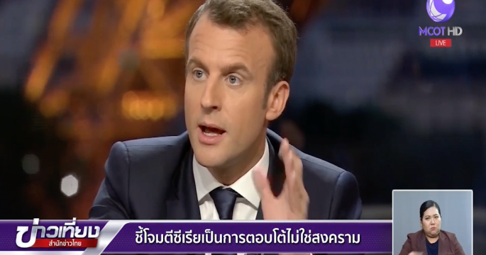 ผู้นำฝรั่งเศสย้ำ มีหลักฐานชัด ซีเรียใช้อาวุธเคมีก่อนยิงขีปนาวุธถล่มซีเรีย และทั้งหมดเป็นการตอบโต้ ไม่ใช่การทำสงคราม