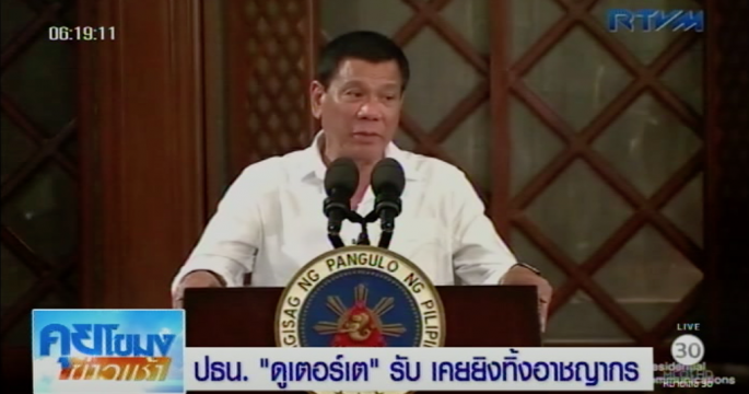 ประธานาธิบดีโรดริโก ดูเตอร์เต ผู้นำฟิลิปปินส์ ยอมรับว่าเคยสังหารผู้ต้องสงสัยว่าเป็นอาชญากรด้วยตนเองสมัยดำรงตำแหน่งนายกเทศมนตรีเมืองดาเวา