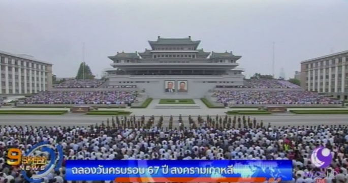 ชาวเกาหลีเหนือกว่า 1 แสนคน พากันไปชุมนุมแน่นจตุรัสคิมอิลซุง กลางกรุงเปียงยางของเกาหลีเหนือเช้าวันนี้ เพื่อเฉลิมฉลองวันแห่งการลุกขึ้นสู้กับจักวรรดินิยมอเมริกา หรือวันครบรอบ 67 ปี