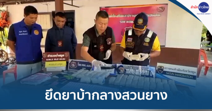 ตชด.ภาค 4 ร่วมกับฝ่ายปกครอง จับกุมผู้ต้องหา 3 คน พร้อมยาบ้าเกือบแสนเม็ด กลางสวนยาง บ้านห้วยพร้าว อ.ละงู จ.สตูล