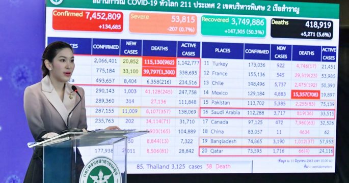 สถานการณ์โควิด-19 ในไทย วันนี้พบผู้ป่วยรายใหม่เพิ่ม 1 รายกลับจากต่างประเทศ ขณะที่ผู้เสียชีวิต 1 รายเป็นชายชาวออสเตรเลียวัย 69 ปี