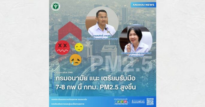 กทม.22 ม.ค.-สถานการณ์ฝุ่น PM 2.5 ใน กทม.กระเตื้องขึ้น แต่ยังพบ 14 เขตเกินค่ามาตรฐาน กองจัดการคุณภาพอากาศและเสียง สำนักสิ่งแวดล้อม กรุงเทพมหานคร (กทม.) รายงานสถานการณ์ฝุ่นละอองประจำวันที่ 22 มกราคม สรุปผลการตรวจวัด PM2.5 ตั้งแต่เวลา 05.00-07.00 น.ตรวจวัดได้ 31-74 ไมโครกรัม/ลูกบาศก์เมตร (มคก./ลบ.ม.) โดยค่าเฉลี่ยอยู่ที่ 49 มคก./ลบ.ม. ค่า PM2.5 มีแนวโน้มลดลง สาเหตุมาจากมวลอากาศหนาวส่วนใหญ่ไหลลงทะเลจีนและมหาสมุทรแปซิฟิก ทำให้เกิดลมตะวันออกและลมตะวันออกเฉียงใต้พัดมาอย่างต่อเนื่อง ช่วยพัดพาฝุ่นควัน PM2.5 ออกไป คุณภาพอากาศในกรุงเทพมหานครจึงดีขึ้นมา แต่ยังคงมีค่าเกินมาตรฐาน อยู่ในระดับเริ่มมีผลกระทบต่อสุขภาพ จำนวน 14 พื้นที่ คือ 1.เขตวังทองหลาง ด้านหน้าปั๊มน้ำมัน เอสโซ่ ซ.ลาดพร้าว 95 : มีค่าเท่ากับ 72 มคก./ลบ.ม. 2.เขตบางคอแหลม บริเวณป้อมตำรวจสี่แยกถนนตก : มีค่าเท่ากับ […]