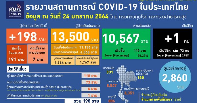 ศบค.เผยผู้ติดเชื้อรายใหม่ 198 ราย พบเสียชีวิต 1 ราย 71 ปี จากสมุทรสาคร แนวโน้มตัวเลขผู้ติดเชื้อลดลงต่อเนื่อง หากสัปดาห์หน้าตัวเลขยังคงที่ คาดอาจผ่อนคลายมาตรการบางอย่าง