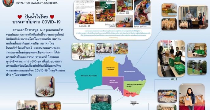 กต.โพต์เฟซบุ๊ก สถานเอกอัครราชทูต ณ กรุงแคนเบอร์รา มอบถุงยังชีพ 600 ชุด เพื่อช่วยเหลือคนไทยในออสเตรเลียที่ได้รับผลกระทบจากโควิด-19