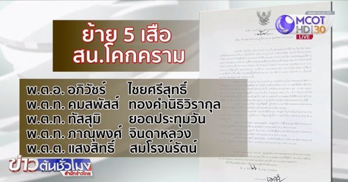 ผบก.น.2 เซ็นย้าย 5 เสือ สน.โคกคราม เซ่นฝ่ายปกครองบุกตรวจสถานบันเทิง ย่านเกษตรนวมินทร์ พบยาเสพติดจำนวนมาก