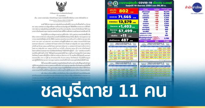สำนักงานสาธารณสุขจังหวัดชลบุรี รายงานสถานการณ์โควิดวันนี้ ติดเชื้อรายใหม่ 802 ราย เสียชีวิตเพิ่ม 11 ราย ผู้ว่าฯ สั่งห้ามเข้า-ออกสถานประกอบการเพิ่มอีก 1 แห่ง