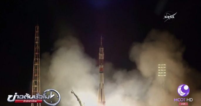 ยานโซยูซถูกยิงขึ้นจากฐานปล่อยยานไบโคนูร์ ในคาซัคสถาน เมื่อเวลา 04.17 น. วันนี้ ตามเวลาในไทย เพื่อนำนักบินอวกาศ 3 คน ขึ้นไปยังสถานีอวกาศนานาชาติ
