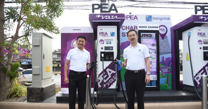 PEA ร่วมกับ บริษัท บางจาก คอร์ปอเรชั่น จำกัด (มหาชน) ติดตั้งจุดบริการชาร์จแบตเตอรี่รถไฟฟ้า (EV Charger Station) ซึ่งจะเปิดให้บริการบนเส้นทางสายหลัก 56 สาขา ต่อเนื่องทุกระยะ 100 กิโลเมตร และผู้ใช้งานสามารถใช้บริการได้ 24 ชั่วโมง