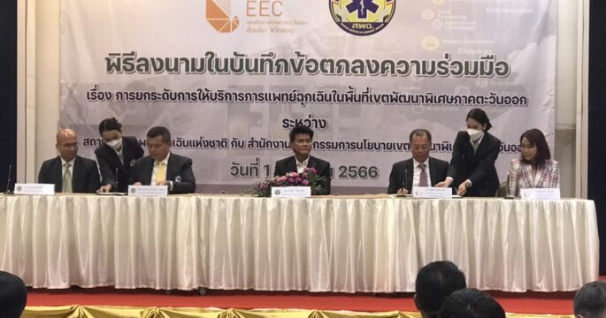 นนทบุรี 1 มิ.ย.-สกพอ.จับมือ สถาบันการแพทย์ฉุกเฉิน ยกระดับการแพทย์ฉุกเฉินในพื้นที่อีอีซี สร้างความเชื่อมั่นให้นักลงทุนและนักท่องเที่ยว นายสาธิต ปิตุเตชะ รัฐมนตรีช่วยว่าการสาธารณสุข เป็นประธานในพิธีลงนามบันทึกข้อตกลง(เอ็มโอยู) ว่าด้วยการยกระดับการให้บริการการแพทย์ฉุกเฉินในพื้นที่เขตพัฒนาพิเศษภาคตะวันออก(อีอีซี)ระหว่างสำนักงานคณะกรรมการนโยบายเขตพัฒนาพิเศษภาคตะวันออก(สกพอ.)กับ สถาบันการแพทย์ฉุกเฉิน โดยนายสาธิต กล่าวว่า พื้นที่อีอีซี เป็นเป้าหมายหลักในการพัฒนาประเทศ หากเกิดอุบัติเหตุฉุกเฉิน ไม่ว่าจะเกิดกับพนักงานที่ทำงานในอีอีซี หรือ นักลงทุน รวมทั้งนักท่องเที่ยว ถ้าเรามีระบบการขนส่งการแพทย์ฉุกเฉินทั้งทางบก ทางน้ำ และทางอากาศ จะช่วยรักษาผู้เจ็บป่วยหรือได้รับอุบัติเหตุได้อย่างรวดเร็ว เป็นการลดการสูญเสียได้ทางหนึ่ง เช่น การนำเฮลิคอปเตอร์ไปรับผู้ประสบอุบัติเหตุในทางหลวงมอเตอร์เวย์ สาย 7 เส้นทางกรุงเทพ-มาบตาพุด เป็นต้น นอกจากนี้ในอนาคตหากโรงพยาบาลประจำจังหวัดในภาคตะวันออกมีลานจอดเฮลิคอปเตอร์ ที่ใช้ลำเลียงผู้บาดเจ็บ ก็จะทำให้มีการรักษาได้อย่างทันท่วงที นายจุฬา สุขมานพ เลขาธิการอีอีซี กล่าวว่า การลงนามในครั้งนี้ จะสร้างกลไกบริการด้านการแพทย์ฉุกเฉินในพื้นที่อีอีซีให้เกิดประสิทธิภาพสูงสุด มีคุณภาพตามมาตรฐานสากล จะช่วยยกระดับคุณภาพชีวิตให้แก่ประชาชนในพื้นที่อีอีซีได้ นอกจากนี้ยังสร้างความมั่นใจให้กับนักลงทุนที่จะเข้ามาลงทุนในภาคตะวันออกได้อีกทางหนึ่งด้วย ร.อ.นพ.อัจฉริยะ แพงมา เลขาธิการสถาบันการแพทย์ฉุกเฉิน เปิดเผยเพิ่มเติมว่า ความร่วมมือในครั้งนี้ จะช่วยยกระดับการให้บริการการแพทย์ฉุกเฉินในพื้นที่อีอีซีให้มีมาตรฐาน สามารถเข้าถึงบริการที่มีศักยภาพ โดยสถาบันการแพทย์ฉุกเฉิน จะสนับสนุนภาคีเครือข่ายให้สถานพยาบาลรองรับการให้บริการที่รวดเร็ว ทั้งระบบปฏิบัติการฉุกเฉิน ระบบสื่อสารและเทคโนโลยีสารสนเทศเพื่อรักษาผู้ป่วยได้อย่างรวดเร็ว […]