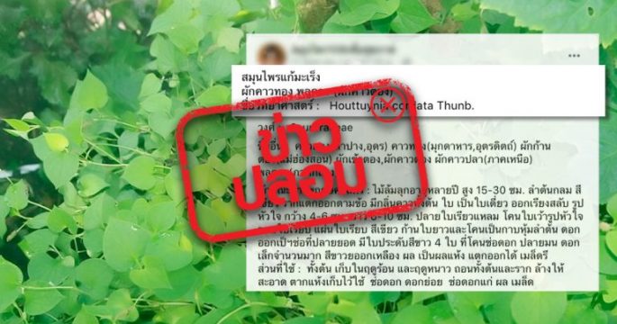 เตือนข่าวปลอม อย่าแชร์! ผักคาวทองรักษาโรคมะเร็ง