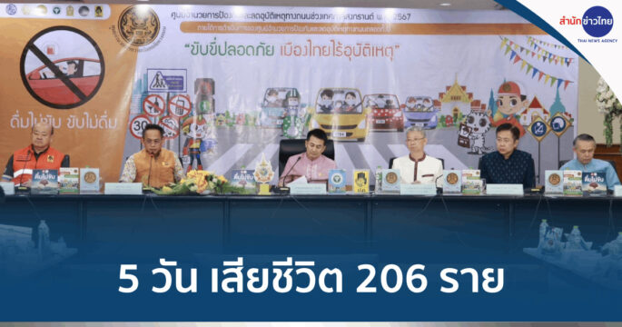 ศปถ. สรุปสถิติอุบัติเหตุทางถนนสะสม 5 วัน ช่วงเทศกาลสงกรานต์ 2567 เกิดอุบัติเหตุ 1,564 ครั้ง ผู้บาดเจ็บรวม 1,593 คน เสียชีวิต 206 ราย กำชับดูแลความปลอดภัยรองรับประชาชนเดินทางกลับ คุมเข้มดูแลการจราจรถนนสายหลัก เส้นทางขาเข้า กทม. กวดขันขับรถเร็ว – ง่วงแล้วขับ