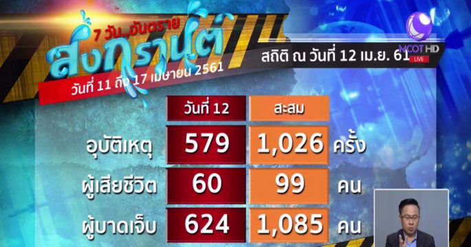 ศปถ. สรุปสถิติอุบัติเหตุทางถนนวันที่ 13 เม.ย.64 เกิดอุบัติเหตุ 376 ครั้ง เสียชีวิต 29 ราย ผู้บาดเจ็บ 392 คน สะสม 4 วัน เกิดอุบัติเหตุรวม 1,465 ครั้ง เสียชีวิตรวม 152 ราย ประสานจังหวัดเพิ่มความเข้มข้นด่านตรวจ