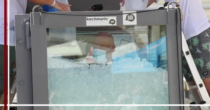 ออสเตรเลีย 6 ก.ย.-ทำสถิติโลก! นักกีฬาชาวออสเตรเลียวัย 42 ปี สวมเพียงกางเกงว่ายน้ำยืนอยู่ในตู้ที่เต็มไปด้วยก้อนน้ำแข็งท่วมไหล่ นานถึง 2 ชั่วโมง 30 นาที 57 วินาที นายโจเซฟ โคเบิร์ล นักกีฬาชาวออสเตรเลียวัย 42 ปี ทำสถิติโลกในการยืนอยู่ในตู้ที่เต็มไปด้วยก้อนน้ำแข็งท่วมถึงไหล่ นานถึง 2 ชั่วโมง 30 นาที 57 วินาที โดยทั้งร่างสวมเพียงกางเกงว่ายน้ำเท่านั้น เมื่อปีที่แล้วนายโคเบิร์ล เคยทำสถิติใช้น้ำแข็งกลบทั้งตัว เป็นเวลานาน 2 ชั่วโมง 8 นาที 47 วินาที นายโคเบิร์ลกล่าวหลังจากทำสถิติโลกว่า ไม่คิดว่าจะทำสำเร็จ ไม่น่าเชื่อเลยจริงๆ พร้อมกับบอกว่าตอนที่เวลาผ่านไปราว 2 ชั่วโมง 30 นาที รู้สึกหนาวแทบทนไม่ได้ จนต้องตั้งใจและอดทน จนทำสำเร็จในที่สุด.-สำนักข่าวไทย