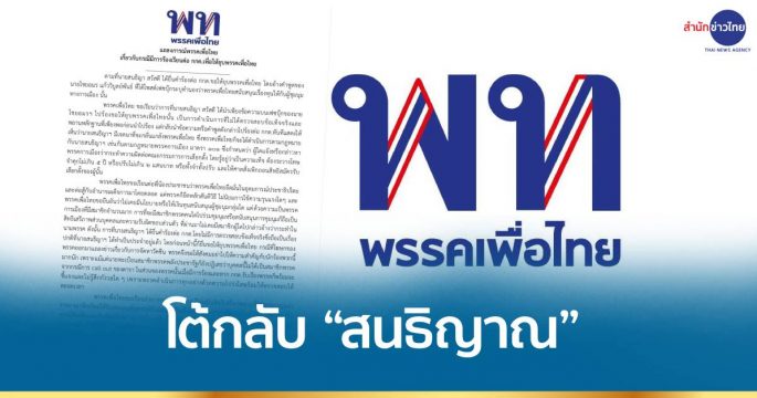 “พรรคเพื่อไทย” ออกแถลงการณ์โต้ “สนธิญาณ” จ่อร้องกลับ เหตุยกข้อความเฟซบุ๊กร้องยุบเพื่อไทย โดยไม่ตรวจสอบข้อเท็จจริง