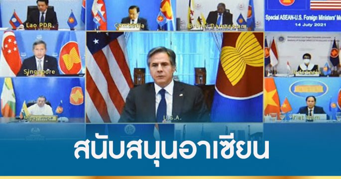 นายแอนโทนี บลิงเคน รัฐมนตรีกระทรวงต่างประเทศของสหรัฐ ให้คำมั่นในระหว่างการประชุมผ่านระบบออนไลน์ร่วมกับรัฐมนตรีต่างประเทศของชาติสมาชิกสมาคมประชาชาติแห่งเอเชียตะวันออกเฉียงใต้ หรืออาเซียน ว่าจะสนับสนุนอาเซียน