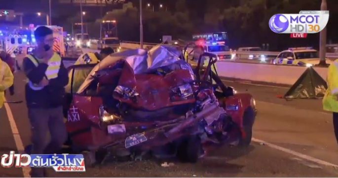 เกิดอุบัติเหตุรถโดยสารบรรทุกพนักงานของสนามบินนานาชาติฮ่องกง พุ่งชนรถแท็กซี่ที่เปิดไฟฉุกเฉินจอดอยู่เลนซ้าย ทำให้มีผู้เสียชีวิตแล้ว 5 คน บาดเจ็บกว่า 30 คน