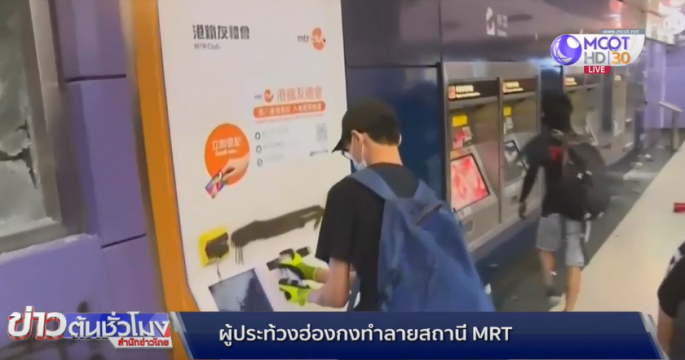 ผู้ประท้วงฮ่องกงทำลายสถานี MRT