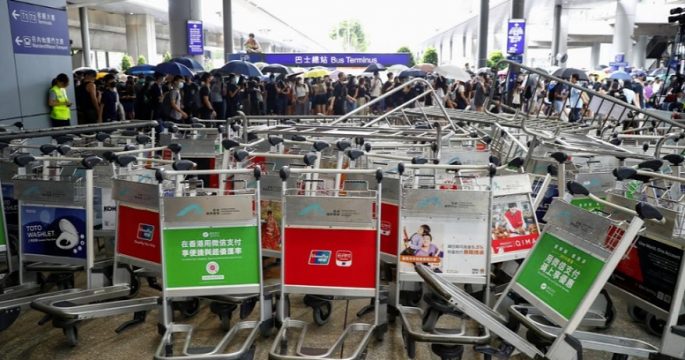 กลุ่มนักเคลื่อนไหวเรียกร้องประชาธิปไตยในฮ่องกงวางแผนที่จะขัดขวางเส้นทางการเดินทางไปยังสนามบินนานาชาติของฮ่องกงในวันนี้
