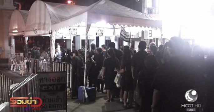 ประชาชนจับจองพื้นที่หน้าจุดคัดกรอง หวังร่วมเป็นส่วนหนึ่งในพระราชพิธีถวายพระเพลิงพระบรมศพ