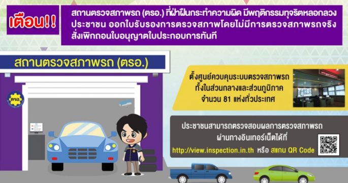 ขนส่งทางบกคุมเข้มสถานตรวจสภาพรถทั่วประเทศ หลังพบมีผู้ใช้ใบ ตรอ.ปลอมขอต่อทะเบียนจำนวนมาก