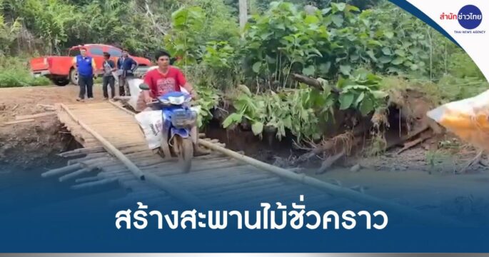 ชาวบ้านช่วยกันสร้างสะพานไม้ชั่วคราว บ้านกอมูเดอ-กลอเซโล