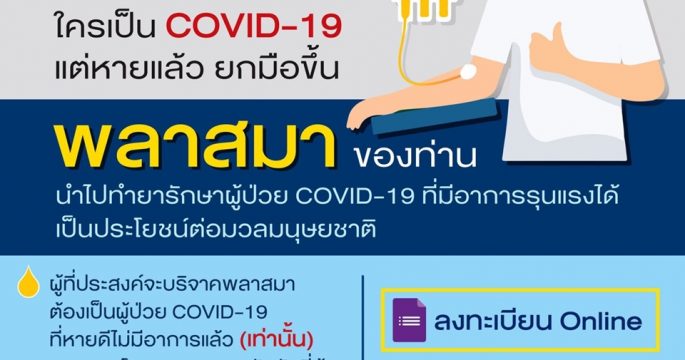 ศูนย์บริการโลหิตแห่งชาติ เปิดลงทะเบียนออนไลน์ให้ผู้ป่วยโรคโควิด-19 ที่หายแล้วกลับมาเป็น Hero บริจาคพลาสมานำไปรักษาผู้ป่วยโควิด-19 ที่มีอาการปอดอักเสบรุนแรง