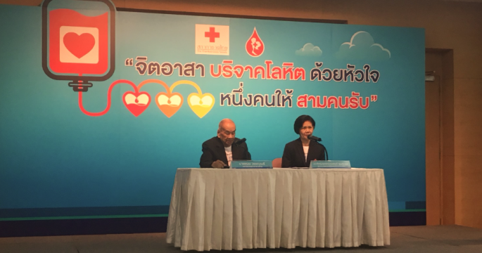 สภากาชาดไทย ชวนจิตอาสา บริจาคโลหิตด้วยหัวใจ1คนให้3 คนรับ พร้อมชวนผู้บริจาคโลหิตบริจาคเพิ่มอีกคนละครั้งต่อปีก็จะมีโลหิตเพียงพอ