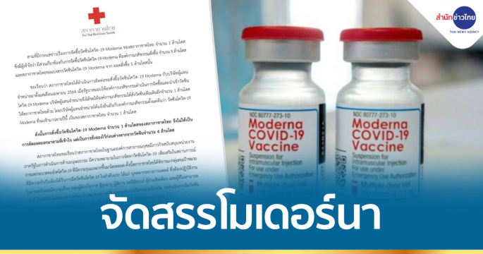 เลขาธิการสภากาชาดไทยระบุว่า ได้แจ้งผลการจัดสรรวัคซีนโมเดอร์นาตามที่ อบจ. หลายจังหวัดขอรับมา ซึ่งพิจารณาจัดสรรให้ 38 จังหวัด ย้ำต้องนำไปฉีดแก่กลุ่มเปราะบางฟรีตามที่กำหนด โดย อบจ. ทุกแห่งบริจาคเข้ากองทุนจัดหาวัคซีนและยาโควิดเพื่อประชาชน 1,100 บาทต่อโดส