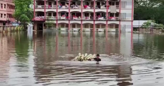 ธากา 27 ส.ค.- สถานการณ์น้ำท่วมหนักในบังกลาเทศยังไม่คลี่คลาย หลายพื้นที่ยังคงมีน้ำท่วมสูง ขณะที่ยอดผู้เสียชีวิตเพิ่มเป็น 23 คนแล้ว เจ้าหน้าที่บังกลาเทศเผยว่า น้ำท่วมเริ่มลดระดับลงอย่างช้า ๆ ประชาชนจำนวนมากจากที่ได้รับความเดือดร้อนทั้งหมด 5.7 ล้านคน ยังคงถูกตัดขาดจากโลกภายนอก และกำลังต้องการความช่วยเหลือเร่งด่วนทั้งอาหาร น้ำดื่ม ยารักษาโรค และเครื่องนุ่งห่ม ทั้งหมดอยู่ในพื้นที่ห่างไกล และถนนหนทางถูกตัดขาด เป็นอุปสรรคสำคัญต่อการจัดส่งความช่วยเหลือและการกู้ภัย สำนักอุตุนิยมวิทยาบังกลาเทศคาดการณ์ว่า สถานการณ์น้ำท่วมอาจยืดเยื้อออกไป หากฝนฤดูมรสุมยังคงตกไม่หยุด เนื่องจากระดับน้ำท่วมลดลงช้ามาก จนถึงขณะนี้ยังมีชาวบ้านราว 470,000 คนที่ยังต้องอาศัยอยู่ตามศูนย์พักพิง 3,500 แห่ง ธนาคารโลกเคยวิเคราะห์ในปี 2558 ว่า ชาวบังกลาเทศ 3.5 ล้านตกอยู่ในความเสี่ยงจากสถานการณ์น้ำท่วมประจำปี นักวิทยาศาสตร์ระบุว่า ภัยพิบัติทางธรรมชาติส่งผลรุนแรงขึ้นเพราะการเปลี่ยนแปลงสภาพภูมิอากาศ.-816(814).-สำนักข่าวไทย