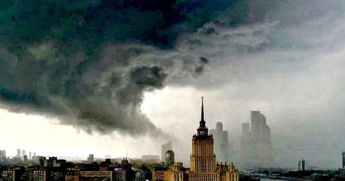 สภาพอากาศเลวร้ายทั้งพายุฝนฟ้าคะนองทำให้ทางการกรุงมอสโกของรัสเซียต้องปิดโซนสำหรับแฟนบอล
