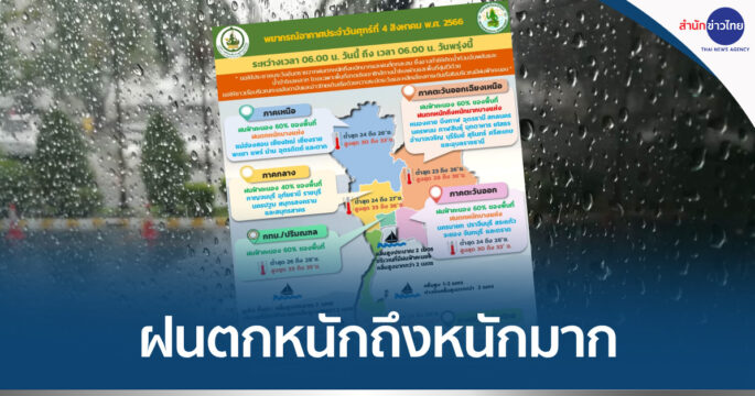 กรมอุตุฯ เผยทั่วไทยฝนตกต่อเนื่อง ตกหนักบางแห่งบริเวณภาคตะวันออก-ภาคใต้ฝั่งตะวันตก และตกหนักมากบางพื้นที่ในภาคเหนือ-อีสาน