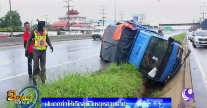 สภาพอากาศตลอดทั้งวันนี้ใน กทม.-ปริมณฑล มืดครึ้มด้วยเมฆฝน ทำให้เกิดอุบัติเหตุหลายราย ที่ปทุมธานีรถบรรทุกเกิดอุบัติเหตุ 2 รายซ้อน ไม่ผู้บาดเจ็บ ส่วนที่ฉะเชิงเทรา จยย.ขี่ฝ่าฝนชนท้ายกระดับ เสียชีวิต