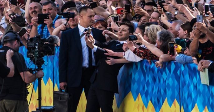 นายโวโลดีเมียร์ เซเลนสกี ผู้ได้รับเลือกตั้งให้เป็นประธานาธิบดีคนใหม่ของยูเครนมีพิธีสาบานตนรับตำแหน่งที่รัฐสภายูเครนวันจันทร์