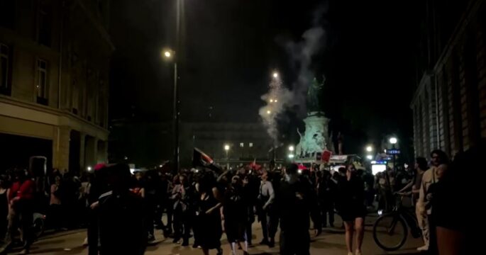 ปารีส 1 ก.ค. – ผู้ประท้วงจำนวนหนึ่งก่อความวุ่นวายในกรุงปารีสของฝรั่งเศส เมื่อค่ำวันอาทิตย์ตามเวลาท้องถิ่น หลังจากพรรคขวาจัดชนะการเลือกตั้งสมาชิกสมัชชาแห่งชาติ ซึ่งเป็นสภาผู้แทนราษฎรรอบแรกในวันเดียวกัน ผู้ชุมนุมจุดพลุไฟระหว่างเดินขบวนไปตามท้องถนนยามค่ำคืนในกรุงปารีส ท่ามกลางกลุ่มควันจากแก๊สน้ำตาและถังขยะที่มีไฟลุก ก่อนหน้านี้ในวันเดียวกันมีผู้ชุมนุมจำนวนมากรวมตัวกันตะโกนคำขวัญต่อต้านพรรคเนชันแนลแรลลีหรืออาร์เอ็น (RN) ที่เป็นพรรคการเมืองขวาจัด หลังจากผลสำรวจหลายสำนักชี้ว่า พรรคนี้ได้คะแนนราวร้อยละ 34 มีคะแนนเป็นอันดับหนึ่ง ตามด้วยพันธมิตรฝ่ายซ้ายนิวป็อปปูลาร์ฟรอนต์หรือเอ็นเอฟพี (NFP) ที่ได้คะแนนราวร้อยละ 29 ผู้ชุมนุมถือป้ายประณามนโยบายของพรรคอาร์เอ็นเรื่องต่อต้านกลุ่มคนหลากหลายทางเพศ คนต่างชาติ และคนเข้าเมือง.-814.-สำนักข่าวไทย