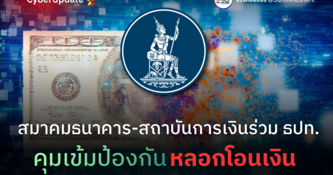 ธปท. จับมือสมาคมธนาคารไทย-สมาคมสถาบันการเงินของรัฐ ร่วมยกระดับการจัดการภัยทุจริตทางการเงิน ยกเลิกส่ง sms แนบลิงก์ ทำธุรกรรมโอนเงิน 5 หมื่นบาท ต้องยืนยันตัวตน สูงสุดต่อวันไม่เกิน 2 แสน คาดทุกธนาคารพร้อมใช้กลางปีนี้