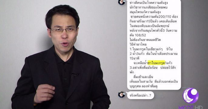 บนสังคมออนไลน์แชร์ว่าคนที่เป็นโรคความดันสูง ให้กินชาใบมะกรูด เห็นผลในสามวัน เรื่องนี้จริงหรือไม่ ติดตามจากศูนย์ชัวร์ก่อนแชร์