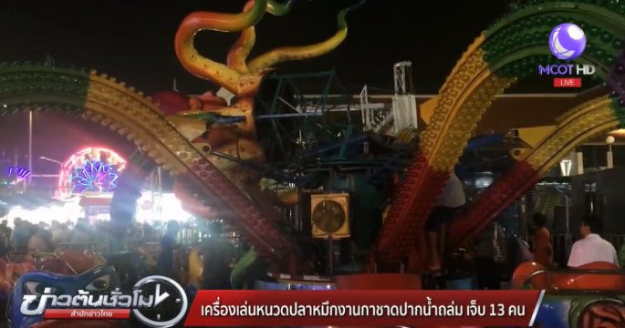 ระทึก! เครื่องเล่นปลาหมึกยักษ์แบบยกสูงหมุนรอบตัว พังถล่มกลางงานกาชาดสมุทรปราการ มีผู้บาดเจ็บ 12 คน