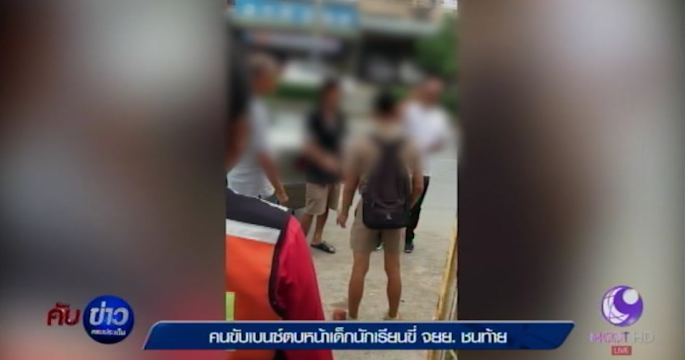 ชายขับเบนซ์ไม่พอใจเด็กนักเรียนขี่มอเตอร์ไซค์ชนท้าย เข้าตบหน้าพร้อมขู่เอาเรื่อง ด้านผู้เห็นเหตุการณ์เผยเบนซ์ไม่เปิดไฟเลี้ยว