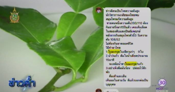 สังคมออนไลน์แนะนำข่าวดี สมุนไพรช่วยคนเป็นโรคความดันสูง เรื่องนี้จริงหรือไม่ ตรวจสอบอย่างไร ติดตามใน ชัวร์ก่อนแชร์ กับคุณพีรพล อนุตรโสตถิ์