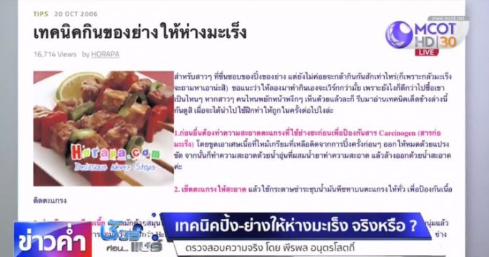 บนสังคมออนไลน์แชร์แนะนำหลายเทคนิคการปรุงและกินของปิ้ง-ย่างให้ห่างมะเร็ง เรื่องนี้จริงหรือไม่ ? ติดตามจากศูนย์ชัวร์ก่อนแชร์