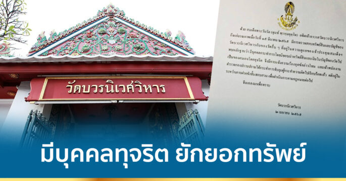 วัดบวรฯ ออกแถลงการณ์ยันมีบุคคลทุจริต ยักยอกทรัพย์