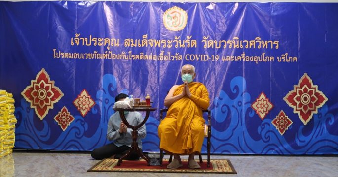 เจ้าอาวาสวัดบวรฯ มอบเครื่องเวชภัณฑ์ เครื่องอุปโภคบริโภคให้แก่ 108 วัดทั่วประเทศ เพื่อช่วยเหลือในสถานการณ์โรคโควิด-19