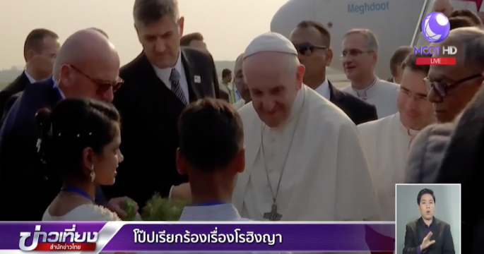 สมเด็จพระสันตะปาปาฟรานซิสประมุขคริสตจักรโรมันคาทอลิกเริ่มภารกิจเยือนเมียนมาที่กรุงเนปีดอ โดยพบกับนางอองซานซูจีผู้นำเมียนมา