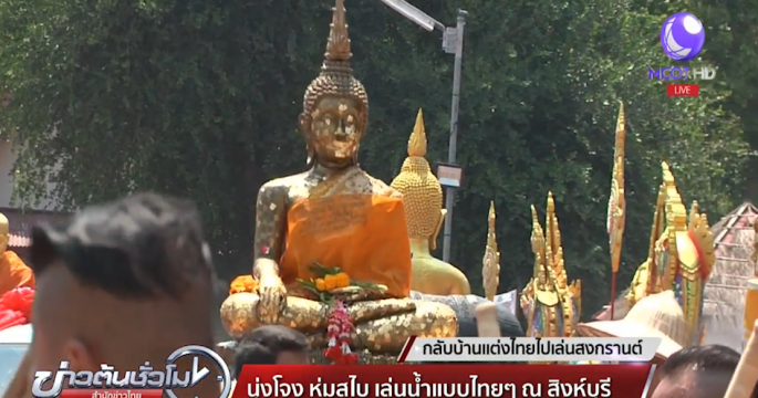 งานนุ่งโจง ห่มสไบ เล่นน้ำแบบไทยๆ ณ สิงห์บุรี มีพิธีอัญเชิญหลวงปู่ธรรมโชติ ให้ประชาชนได้สรงน้ำ