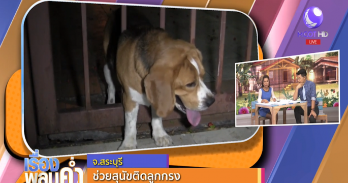 เจ้าหน้าที่เข้าช่วยเหลือ “ถังเงิน” สุนัขพันธุ์บีเกิลเพศผู้ ติดลูกกรงรั้วบ้าน หลังพยายามวิ่งตามเจ้าของออกไปข้างนอก