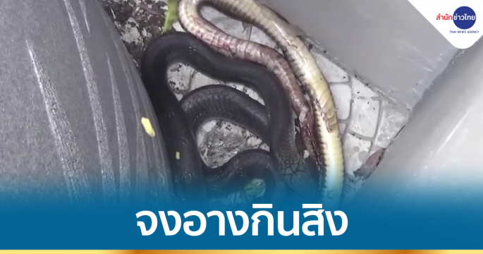 เจ้าหน้าที่กู้ภัยฯ รับแจ้งขอความช่วยเหลือจากชาวบ้าน พบงูจงอางขนาดใหญ่กำลังคายงูสิงออกจากปาก ใช้เวลาไม่นานก็สามารถหลอกล่องูให้เลื้อยเข้ากล่องพลาสติก เตรียมปล่อยสู่ป่าต่อไป