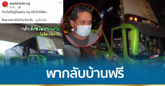 เรื่องราวดีๆ กับความมีน้ำใจของเจ้าของรถบัส ชวนพี่น้องประชาชนในจังหวัดสมุทรปราการ ที่จะเดินทางกลับบ้าน จ.สระแก้ว ติดรถกลับบ้านด้วยกันฟรี ไม่คิดค่าใช้จ่าย