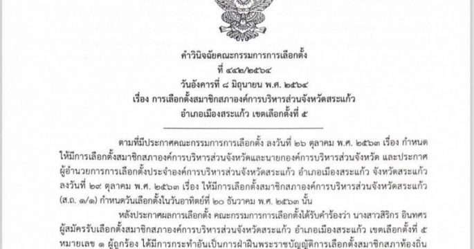 กกต.สอย ส.อบจ.สระแก้ว พร้อมเอาผิดอาญา รู้อยู่แล้วว่าขาดคุณสมบัติแต่ลงสมัครรับเลือกตั้ง เหตุเคยต้องคำพิพากษาถึงที่สุดคดีลักทรัพย์ เสนอ ผู้ว่าฯสระแก้ววินิจฉัยการสิ้นสุดสภาพ ส.อบจ.